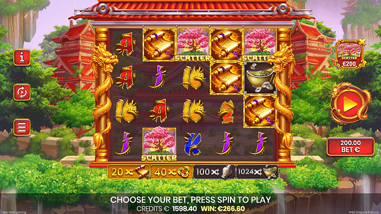 The game transports players to a mythical world of the Far East where wild dragons and the Gifts of Fortune hold the power to shape the fate of those who spin the reels and chase the wins across the 5x4 grid of this high volatility game.