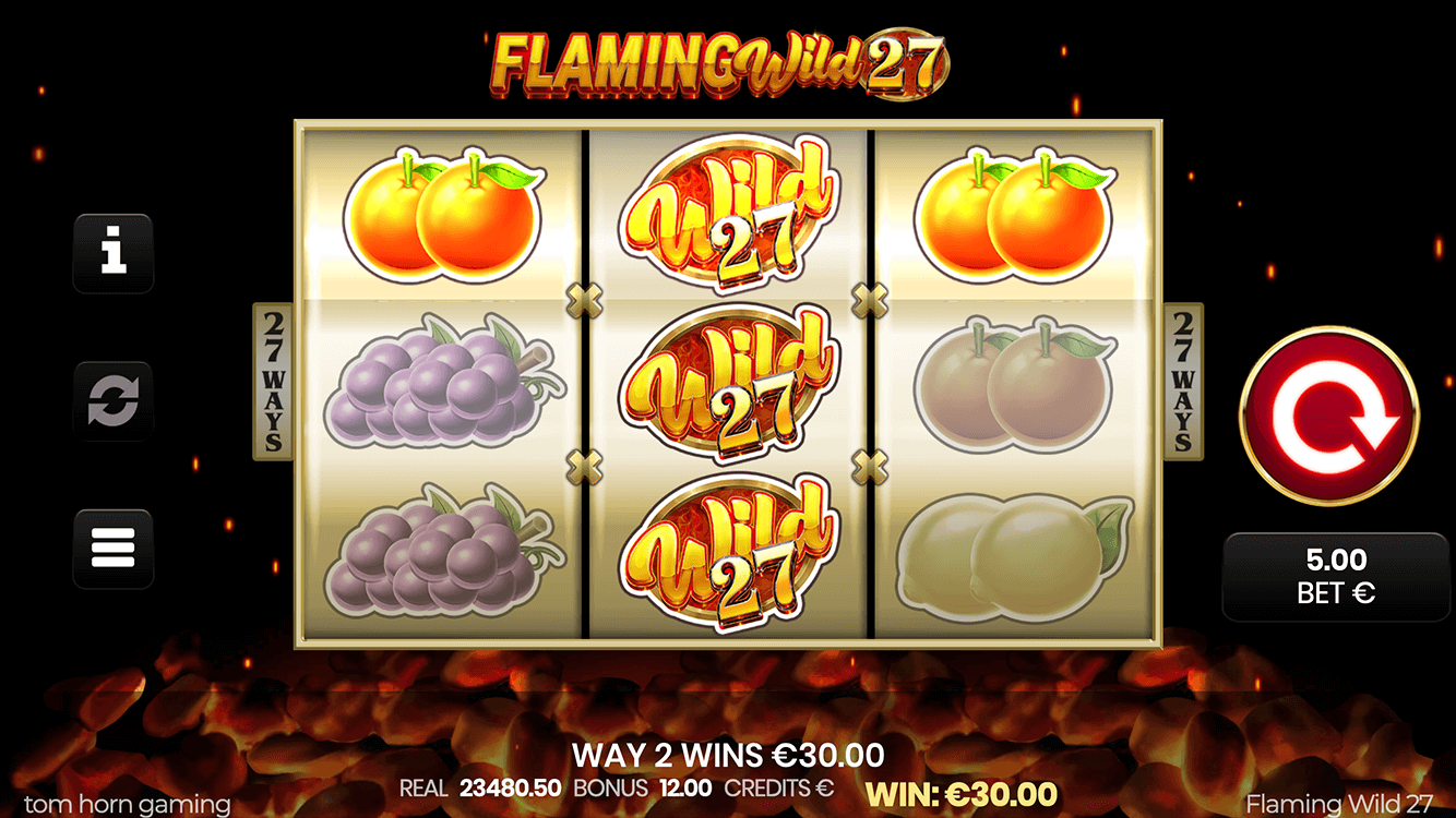 “Flaming Wild 27 represents our dedication to innovation and delivering an exceptional gaming experience whilst honouring the legacy of traditional slot machines, “ said Tom horn Gaming. “The game is designed for players who yearn for the classic fruit machine thrill, yet demand contemporary swift gameplay with substantial winning potential. We believe it will quickly attract a loyal fanbase worldwide.”