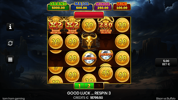 Players start with 3 respins, with each new symbol resetting the count to 3. Cash symbols can award prizes ranging from 1x to 10x the player’s bet. Additionally, Jackpot Mystery symbols can award MINI, MINOR, MAJOR, or GRAND Jackpots at the end of the feature. At the end of the HOLD & WIN Bonus Game, all cash and Jackpot prizes are tallied to determine the total win.
