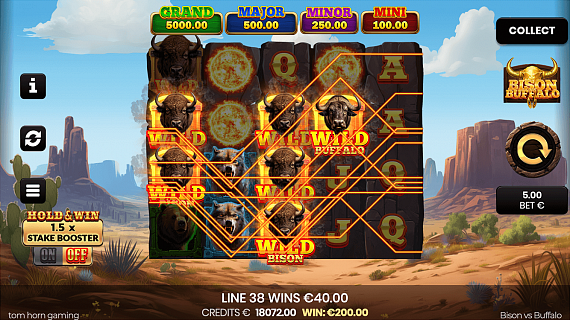 The HOLD & WIN Bonus Game is triggered by 6 or more Sun symbols. During this bonus round, triggering symbols remain fixed in place, transforming into coin symbols that reveal cash prizes. Base game symbols disappear, leaving empty spaces for respins. All bonus symbols pay out exclusively during this bonus round and remain fixed on the reels throughout.