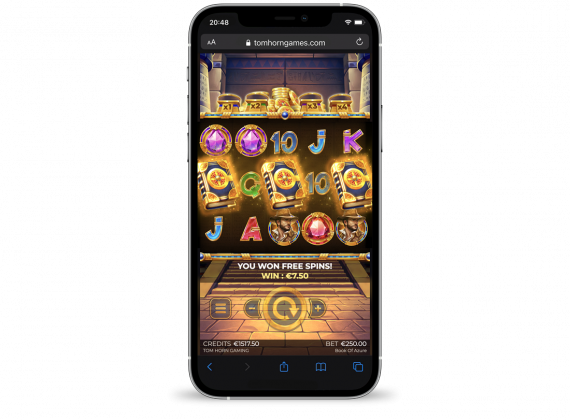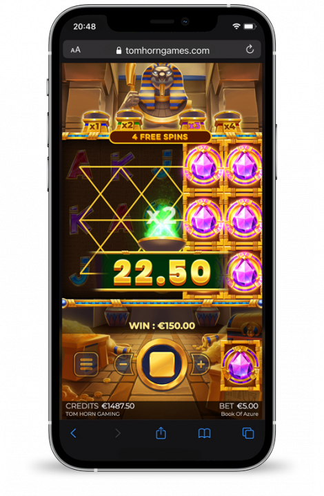 The FREE SPINS round can be instantly triggered from the base game by purchasing it for 50x the current total bet. During the buy feature, there are no other wins possible within the base game except for the one that forwards the player into the FREE SPINS. There are also no other wins possible in the next SHATTER mode after the FREE SPINS.