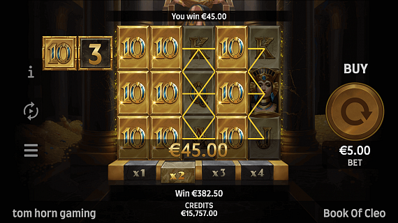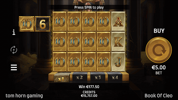 When three Book symbols appear on the screen at the same time, they trigger 10 retriggerable FREE SPINS. They initiate FREE SPINS when they’re accumulated during the Shatter mode. FREE SPINS always start with 1x MULTIPLIER and it increases up to 4x. In each FREE SPINS round the MULTIPLIER is reset back to x1. The special expanding symbol is evaluated at the end of the SHATTER mode. The Book symbol cannot be selected as a special expanding symbol during FREE SPINS. FREE SPINS are played at the same bet as in the base game. FREE SPINS can occur only once during the SHATTER mode.