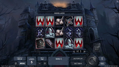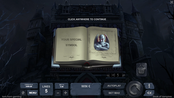 3 Book symbols, appearing simultaneously on only reel 1, 3, and 5, trigger 5 to15 FREE SPINS. They initiate the BLOODY FREE SPINS when they’re accumulated during the SHATTER MODE. At the beginning of the BLOODY FREE SPINS a special expanding symbol is selected and it expands to cover the whole reel. BLOODY FREE SPINS are retriggerable. 10 new FREE SPINS are always awarded. The BLOODY FREE SPINS feature always starts with 5 winlines, increasing up to 243 ways. In each new free spin the number of winlines is reset back to 5. The special expanding symbol is evaluated at the end of the SHATTER MODE. The Book symbol cannot be selected as a special expanding symbol during FREE SPINS.