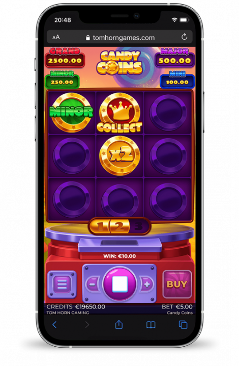 The COIN COLLECTOR symbol remains throughout, collecting COINS with Cash (1x–50x bet) or Jackpot values (MINI, MINOR, MAJOR, GRAND). A MULTIPLIER COLLECTOR may boost its value by X2, X3, or X4. The total win is taken from the COIN COLLECTOR at the end.
