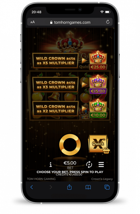 QuickX™ guarantees WILD CROWN acts as a x2 or x3 or x5 MULTIPLIER. There are 3 options: