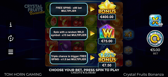 QuickX™ is a feature that guarantees the player will jump right into the game’s features. It presents players with 3 options to choose from: