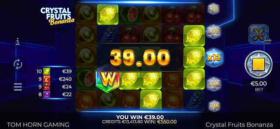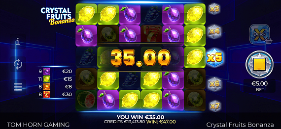 During the BlastX™ feature, win combinations shatter, allowing new symbols to appear and form new winning combinations. A maximum count of shatter rounds is 15. The win MULTIPLIER starts at 1 and increases with each shatter round up to a maximum of 15. The BlastX™ mode ends when the MULTIPLIER reaches x15 or when no winning combination appears on the reels.