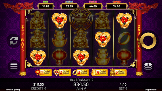 The player can play higher level with more Gold symbols activated. They increase player’s chances to win the bigger Jackpot. The number of Gold symbols played determines the amount of the Jackpot.