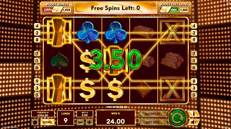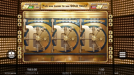 To increase the chance of launching either Gold Free Spins or Vault Gold Bonus Game, players can use the Gold Booster feature. Players do not pay for the feature. By triggering Gold Booster they increase the probability of playing with 1.5x multiplier on their bet. The feature booster is disabled during Gold Free Spins.