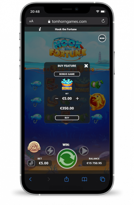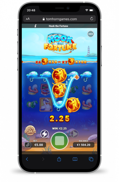 The FISHING BONUS GAME can be promptly activated from the base game by purchasing it for 7 times the present total bet. The bonus buy feature All Wins MULTIPLIER FREE SPINS upon its conclusion.