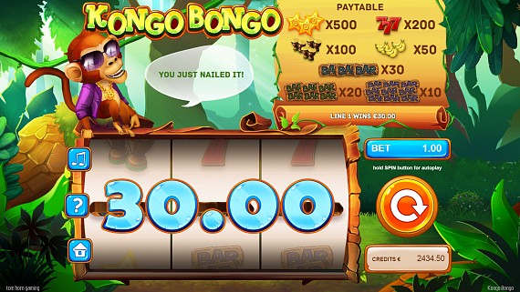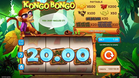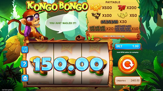To speed things up even more, Kongo Bongo introduces an amazing feature with the paytable changing dynamically. The higher players’ bets, the more they win.
