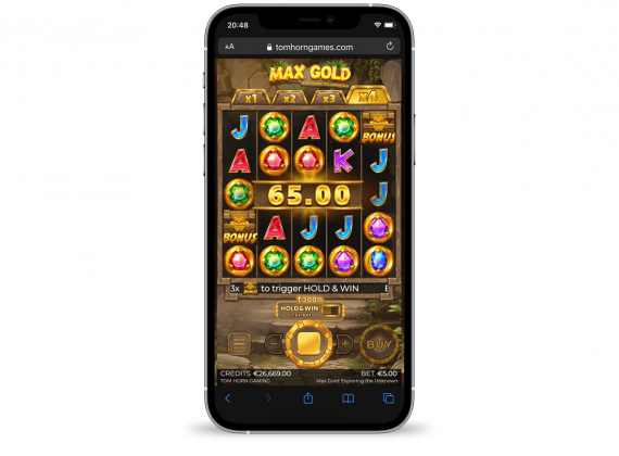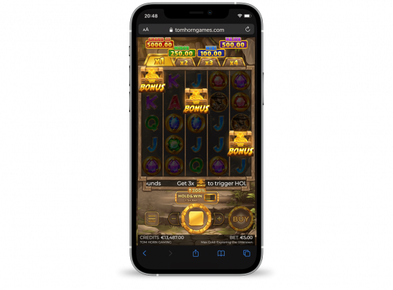 The HOLD & WIN bonus game is triggered by 3 Bonus symbols. Base game symbols disappear, leaving empty spaces for respins. All bonus symbols pay out exclusively during this bonus round and remain fixed on the reels throughout.