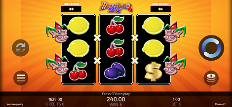 The Dollar sign is the Scatter. Three Scatter symbols award up to 25 Free Spins with a 2x multiplier. Free Spins can award more Free Spins.