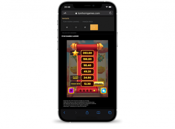 Golden Star may randomly appear at levels 2 to 5, instantly doubling your win with no guess required. After 5 levels, the win is auto-collected.