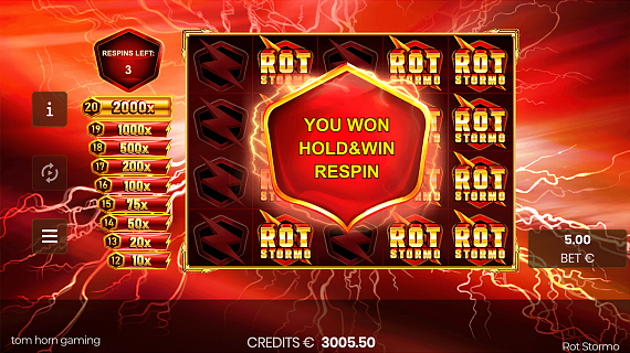 The ROT STORMO HOLD&WIN RESPIN round could be instantly triggered from the base game by buying it for 100x the current total bet.