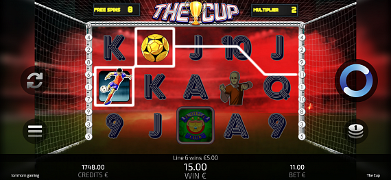 If the player gets at least 3 Cup Scatter symbols, Free Spins are triggered. If the Emblem, the special Bonus symbol, lands on the reels during Free Spins, it will increase a Free Spins multiplier by one, up to 12x.