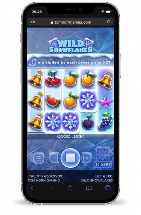 WILD SNOWFLAKE acts as X5 MULTIPLIER. WILD SNOWFLAKES multiply each other. Bet is multiplied by 5x.