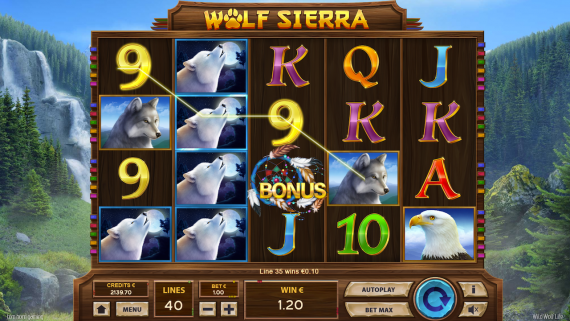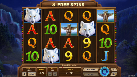 Dreamcatcher is a Scatter symbol. When 3 Scatter symbols appear on the 2nd, 3rd, and 4th reel a bundle of 5 Free Spins is triggered, using the same lines and bet per line as the initial spin that initiated Free Spins. During Free Spins, the WILD Wolf symbol locks in place until the end of the feature. Free Spins can be re-triggered multiple times with Scatter symbols re-appearing on any reel and awarding an additional free spins. Payouts are calculated by adding up all wins at the end of the feature.